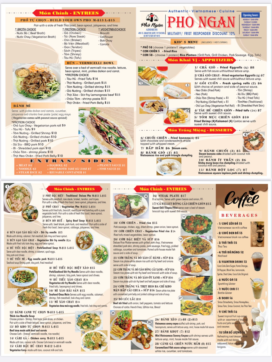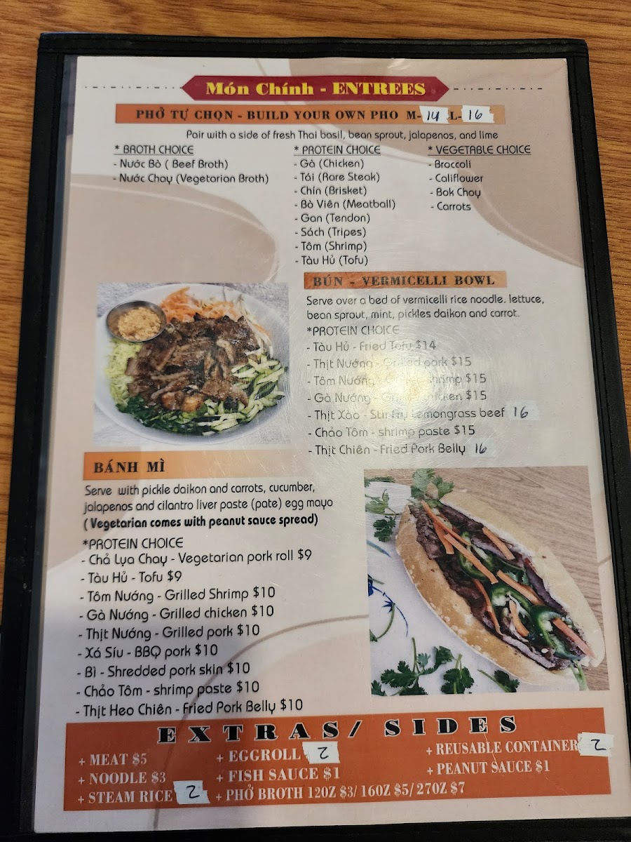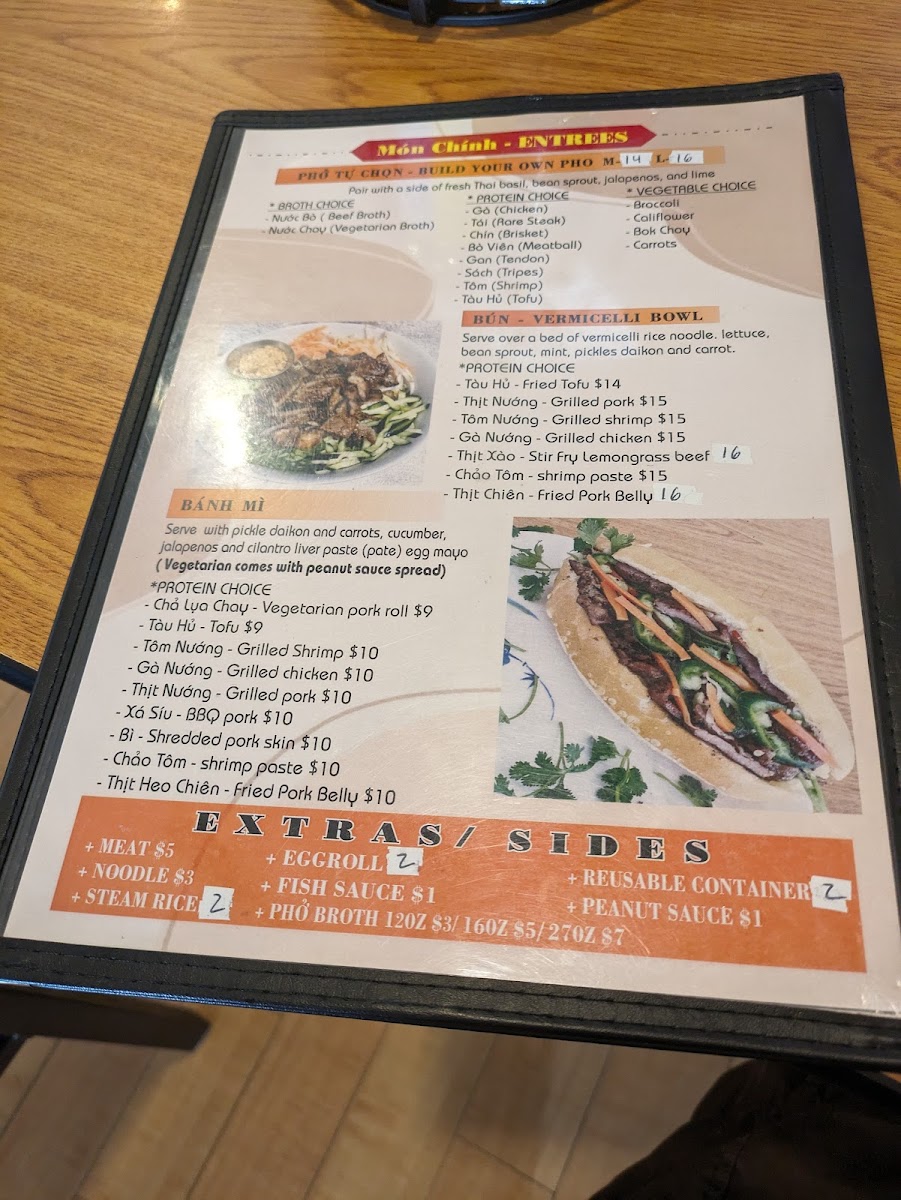 Build your own Pho. Choose a Broth, Up to 2 Meats, and up to 4 vegetables.